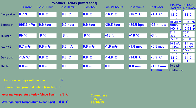 | Rainfall (last hour) | 0.0 mm | Rainfall (since midnight) | 0.0 mm (0.00 in.)--- |